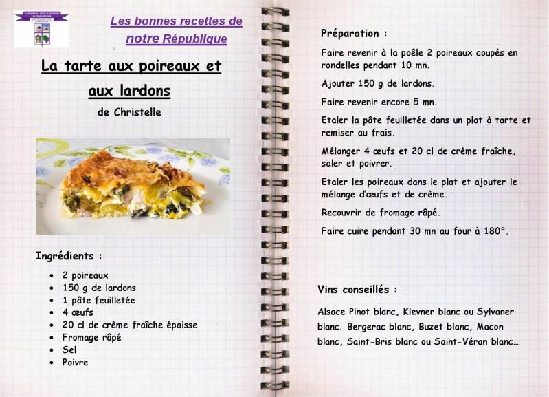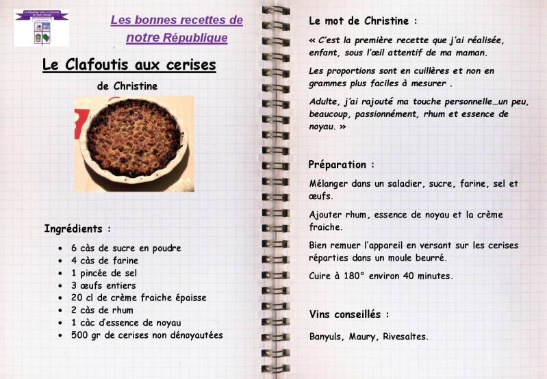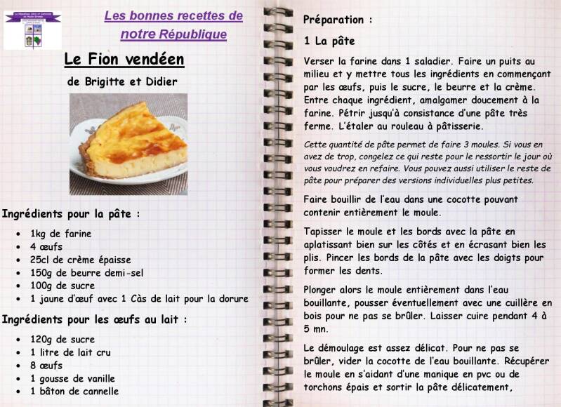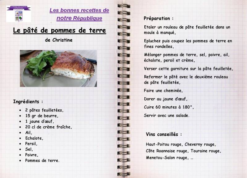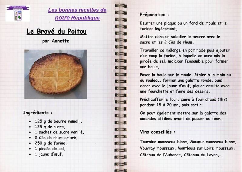 Notre série « Les bonnes recettes de notre République » se poursuit avec une recette que nous a fait parvenir Christelle, notre Ambassadrice culinaire en Poitou.