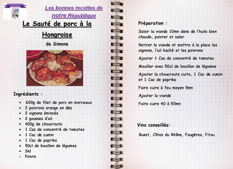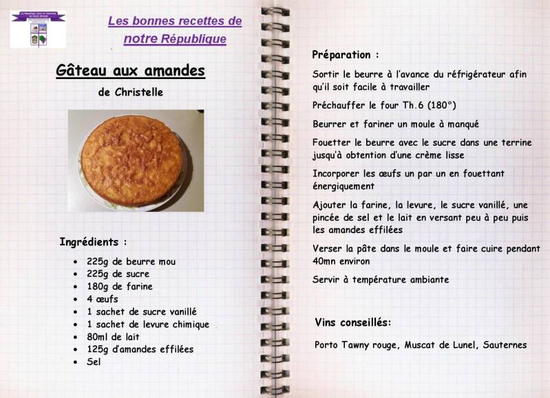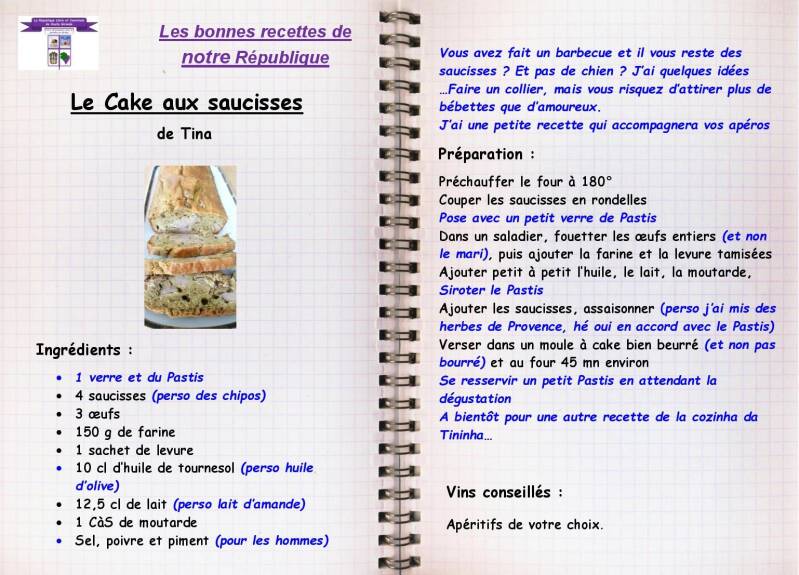 Le Gouvernement de la République Libre et Conviviale de Haute Gironde remercie celles et ceux qui nous ont fait parvenir des recettes afin que nous vous les partagions.