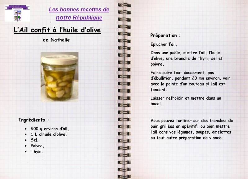 La recette de ce jour qui nous est proposée par Nathalie : L'Ail confit à l'huile d'olive.