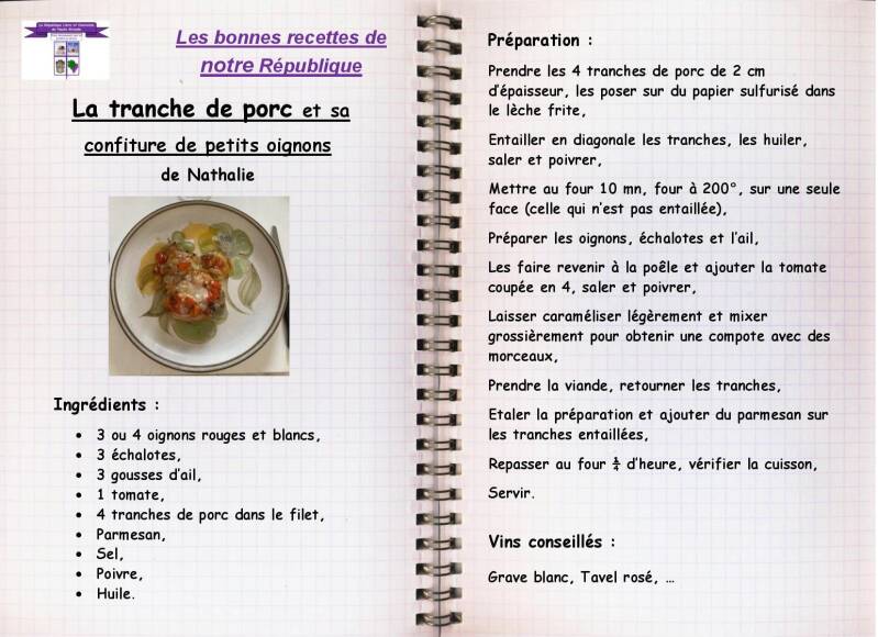 La recette d'aujourd'hui, "La tranche de porc et sa confiture de petits oignons", nous est proposée par Nathalie.