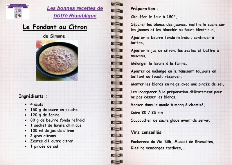 Nous poursuivons notre série culinaire en vous proposant une recette que nous partage Nathalie. Nous remercions Nathalie, fidèle Citoyenne de la République Libre et Conviviale de Haute Gironde, qui rejoint à son tour le groupe des Maîtres Queux. Ces amateuses et ces amateurs qui nous font parvenir les recettes qui ont fait le bonheur de leurs amis ou de leur famille.