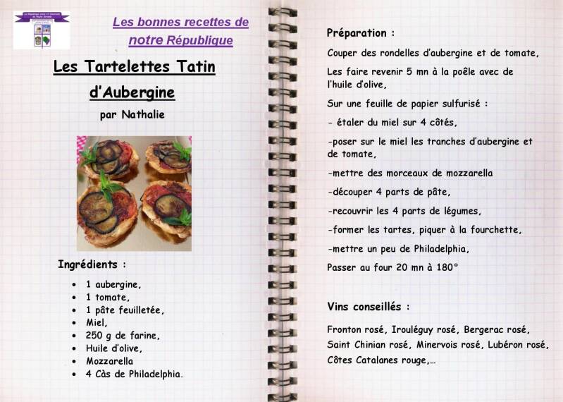 La recette de Nathalie est celle des Tartelettes Tatin d'Aubergine.