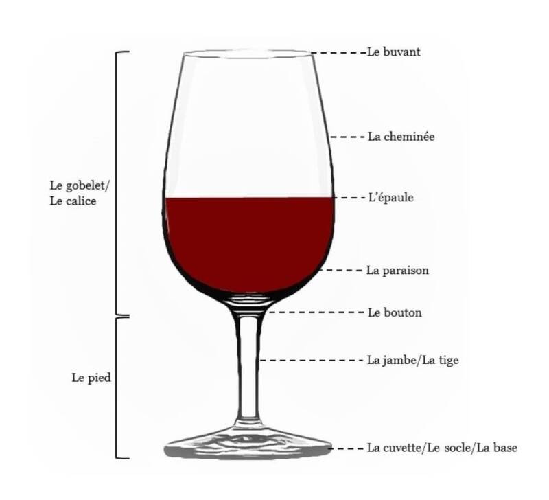 Les différentes parties du verre à vin INAO