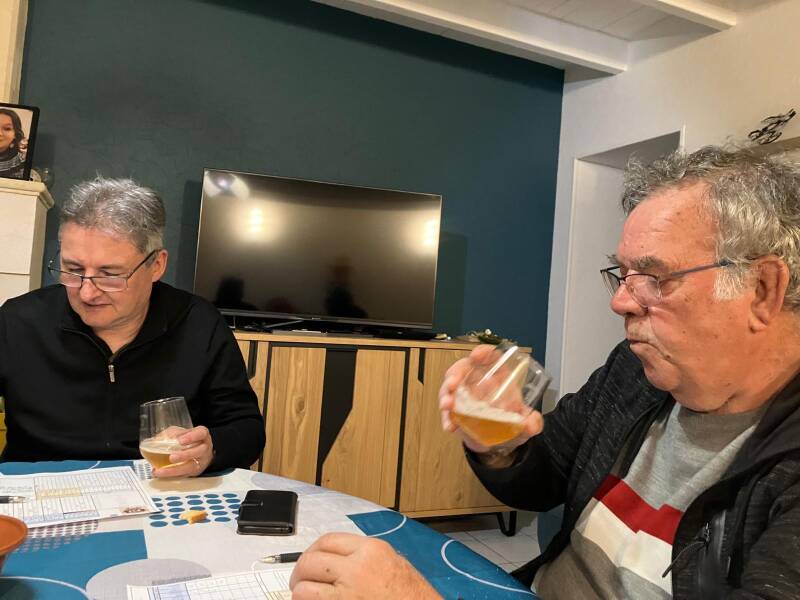 Les dégustateurs se sont retrouvés dans la salle des associations d'Anglade pour une nouvelle analyse. Les bières avaient été sélectionnées par Mario et en provenance d'une brasserie ardéchoise.